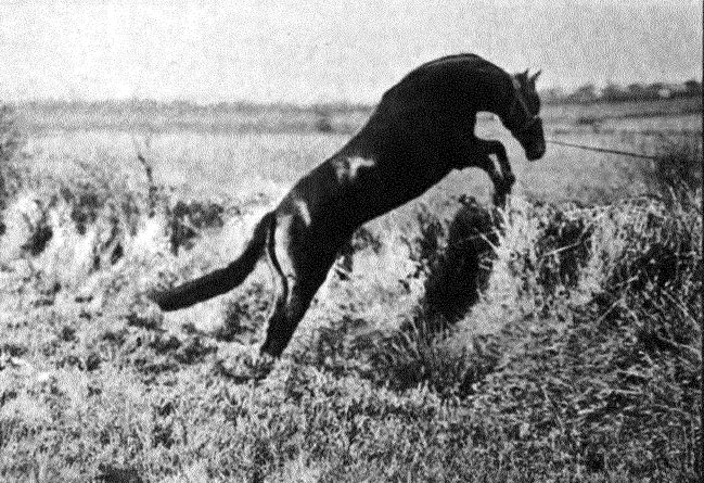 Here, I think, lies the whole secret of giving them a taste for jumping: only send them over small places they can manage easily without being frightened, let them take their own time, never touch them with a whip, pat and make much of them when they have done well, and it is wonderful how quickly they take to the business.